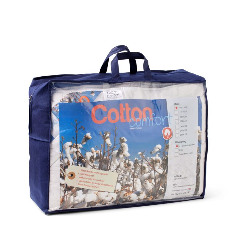 Het katoen comfort dekbed is gemaakt van natuurlijke materialen. Zowel de tijk als de vulling zijn van katoen van hoge kwaliteit. Dit maakt deze dekbedden optimaal ventilerend. Het katoen van de tijk is gesanforiseerd, waardoor het krimpvrij is en daardoor ook wasbaar tot 90°C. De dekbedden zijn gestikt in een zig-zag-patroon waardoor de vulling niet zal verschuiven.
