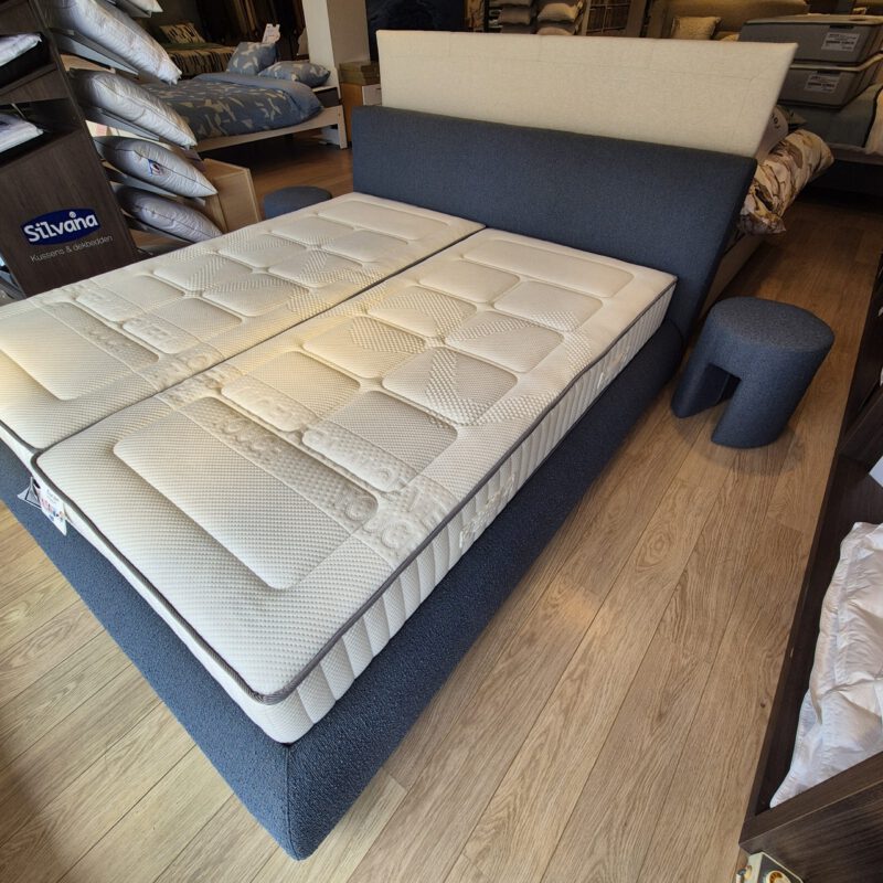 Ervaar comfort en stijl met dit prachtige showroommodel bed in de royale maat 180 x 200 cm. Het bed is uitgerust met een vlakke inzet boxsprings, wat zorgt voor optimale ondersteuning en ventilatie tijdens het slapen.